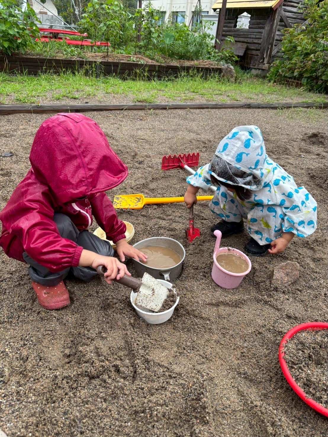 大雨の一日も、子どもたちにとっては自然や素材に触れ、仲間とともに過ごす豊かな時間になりました。