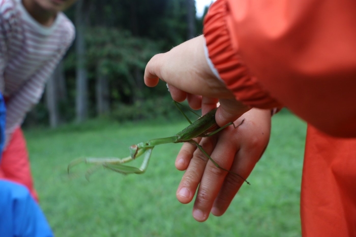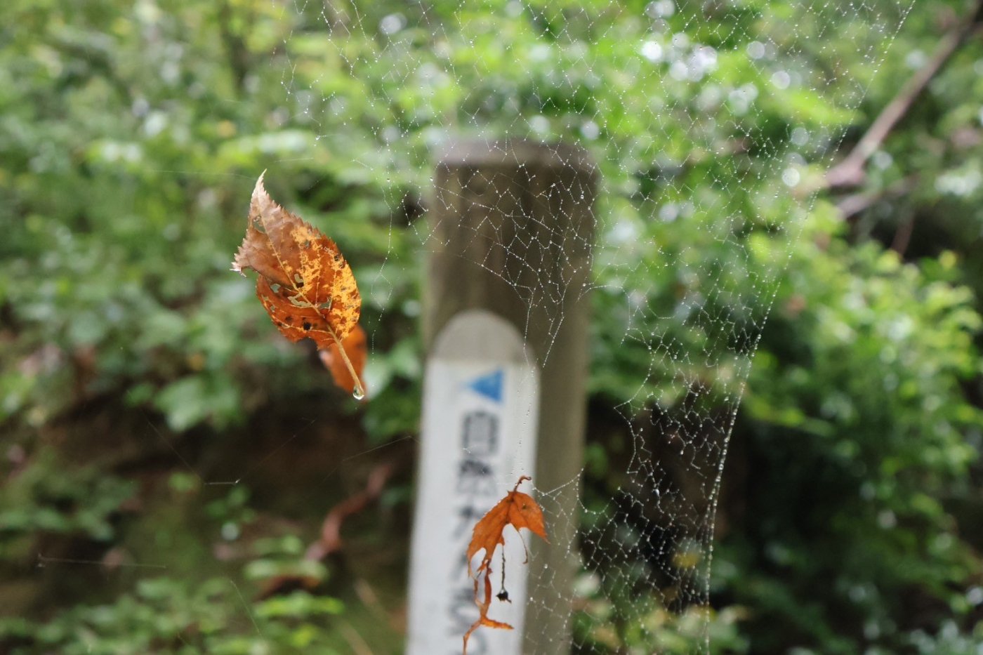 クモの巣、かまきり、かえる。