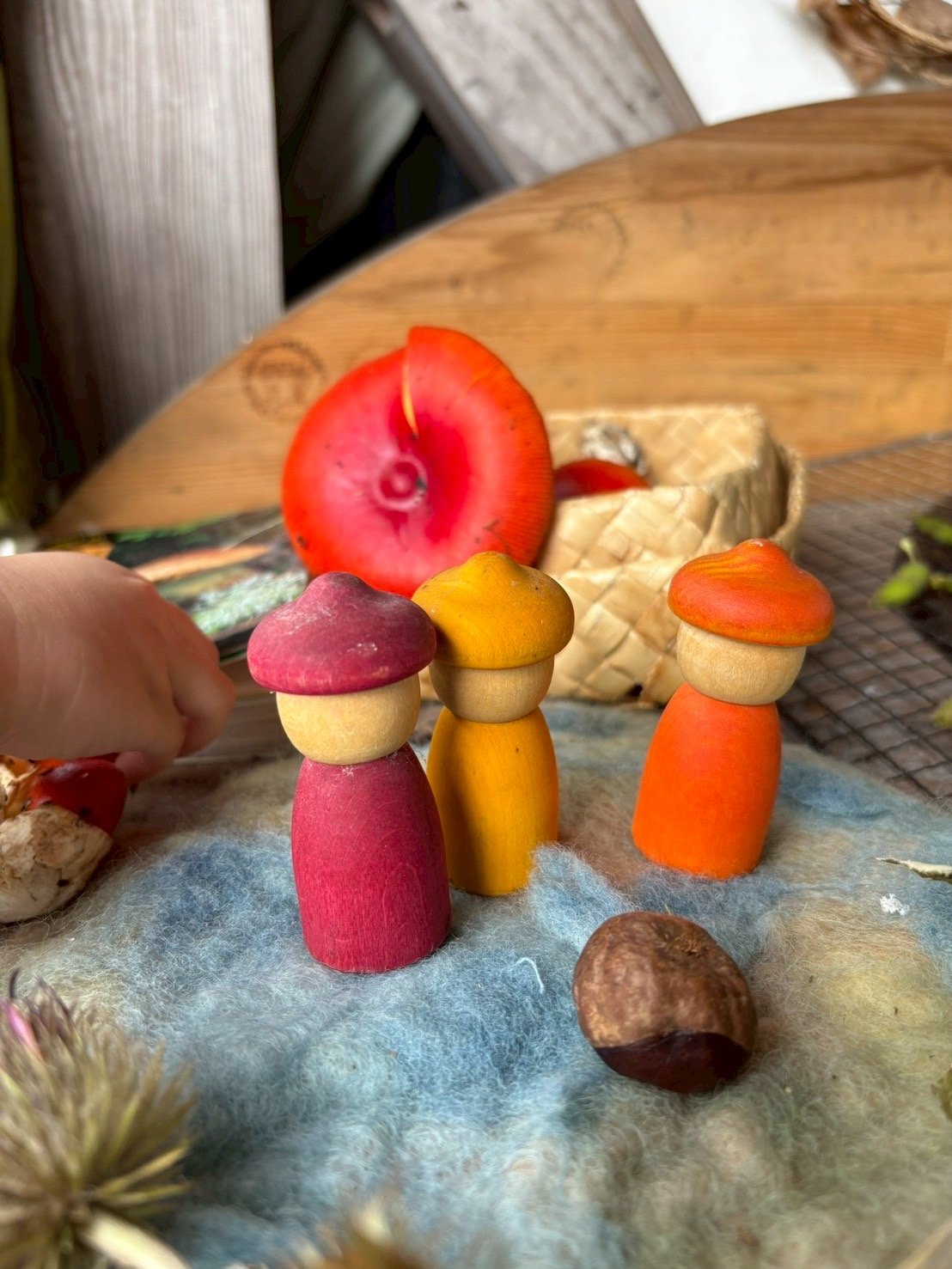イガに入った小さな栗、きのこ、どんぐり。