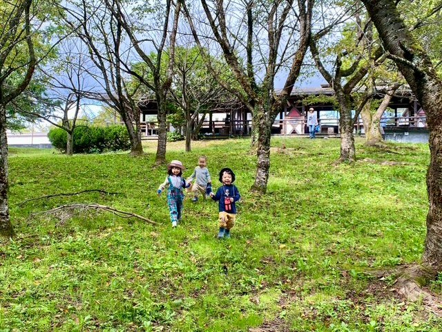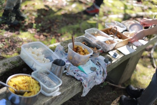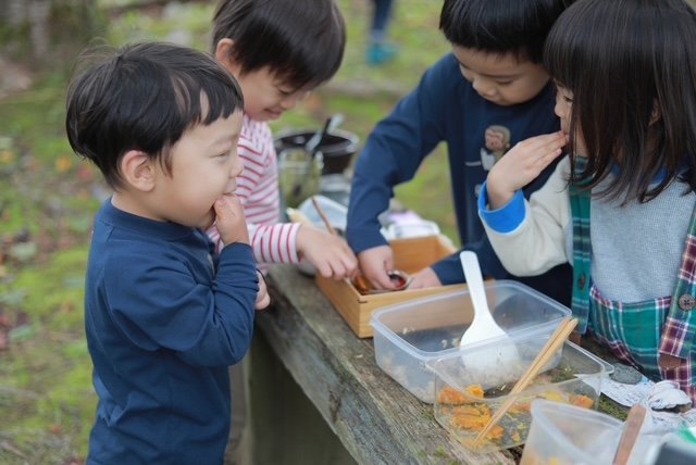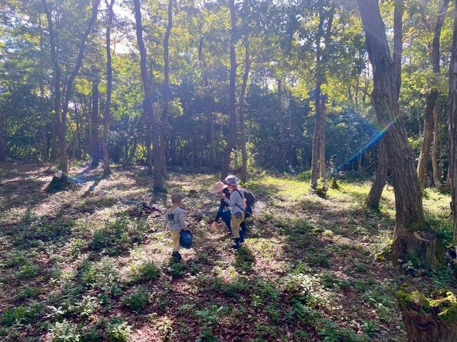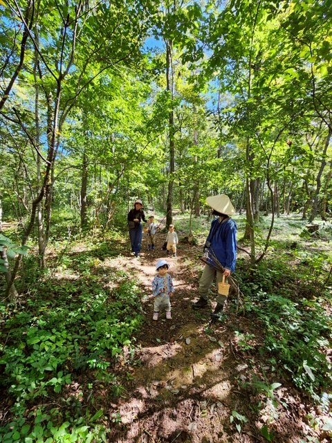 2週間後にみんなで棒まきパンをするので、枝を探しに森へお散歩にレッツゴー!