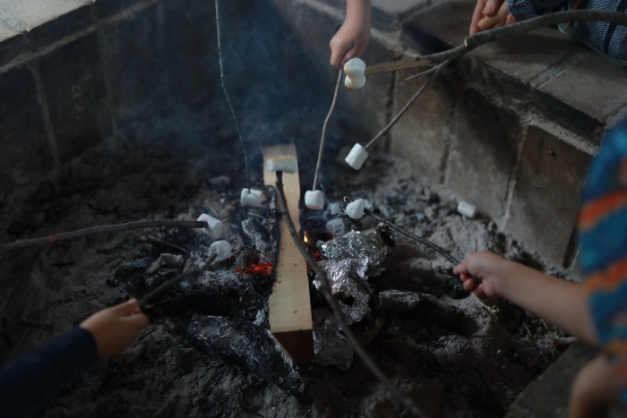 最後は囲炉裏でマシュマロを焼いて、みんなで食べました。
