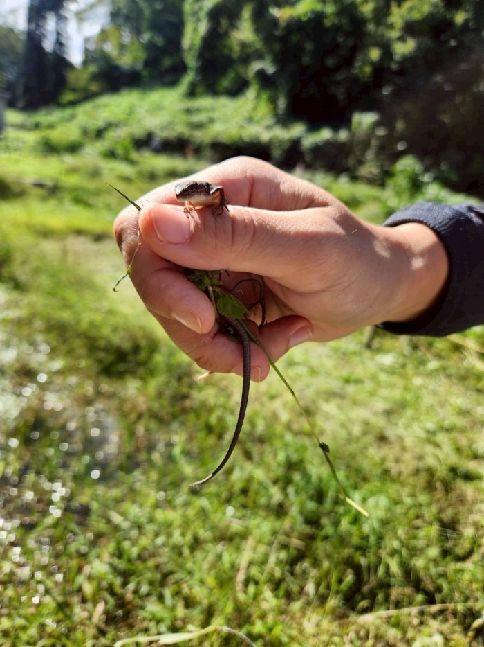 カエルさん、バッタさん、トンボさん、カナヘビさん、森の仲間にたくさん会えました。