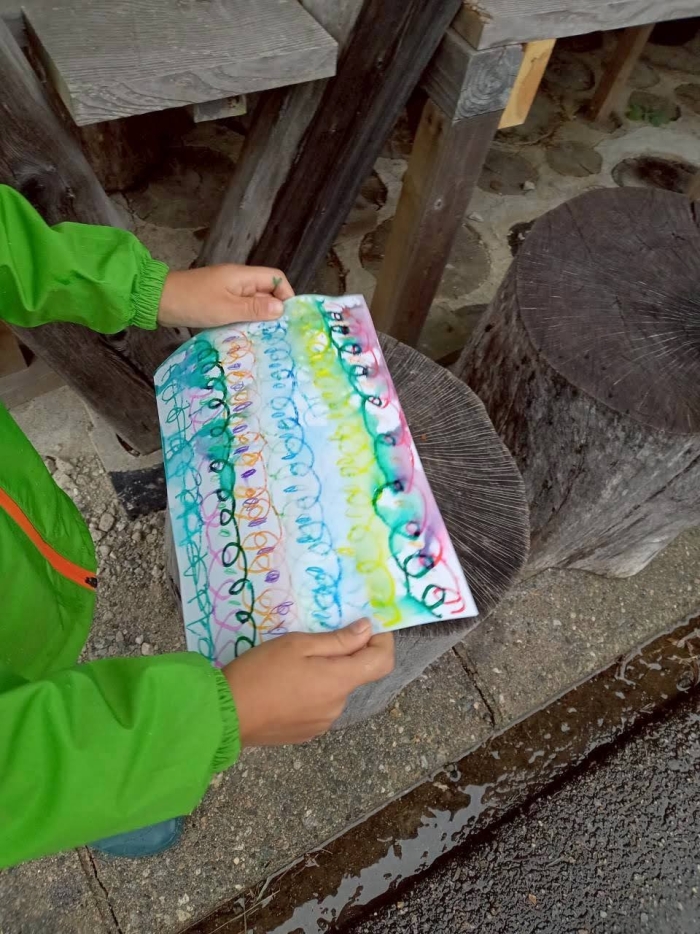 お昼を食べてから、雨のお絵描きを楽しみます。