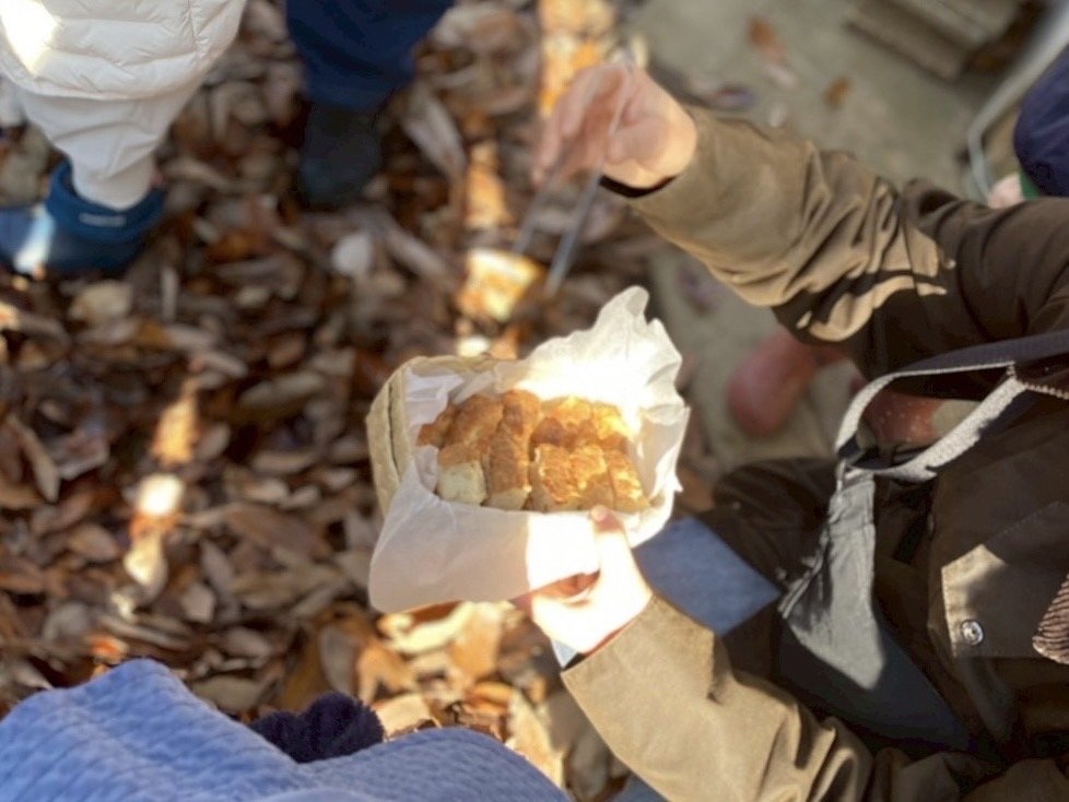 おやつ係さんが用意してくれたのはしっとりもちもちの手づくりパン。