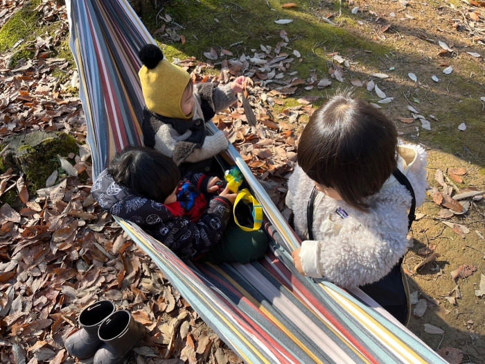 ハンモックでゆっくりする子や落ち葉を集める子、博物館横の道を散策する子、博物館でもの作りに没頭する子などそれぞれやりたいことを見つけて楽しみました。