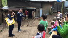 ウサギとカメの人形劇を楽しんでから、散歩へ出発です。