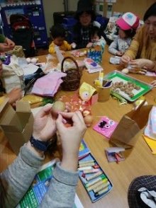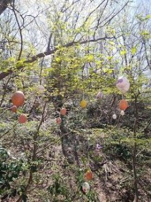 2019年04月18日(木) 森のようちえん イースター! 名残桜を愛でつつ博物館へ集合。朝から暑い予感。 今日はイースター。私も初めてでしたが、春の訪れを祝うには森はぴったりの場所。まずはみんなで持ち寄った卵の殻にデコレーション 春探し、そして隠されたお楽しみプレゼントも探しながら炭焼き小屋に向かいます。 みんなで木にデコレーションし、春の良き日を祝います。久しぶりのハンモックも大人気! 水辺に戯れる子たち。今年も春が来たね。たくさん遊ぼうね。