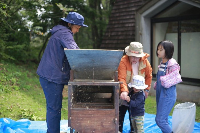 写真家かあさんからの素敵な写真たちです。田んぼの後に博物館に行って唐箕(トウミ)という機械で大きい米と小さい米と選別したそうです。