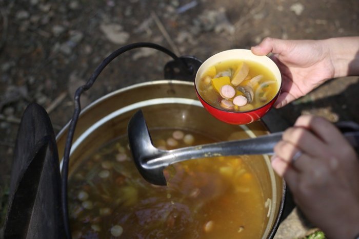 お昼はかぼちゃがごろごろ入ったスープ。ほっこり温まりました。