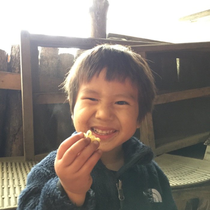 博物館でおやつのドライフルーツを食べて探検に出発!