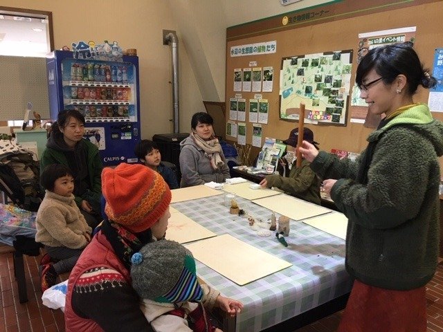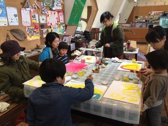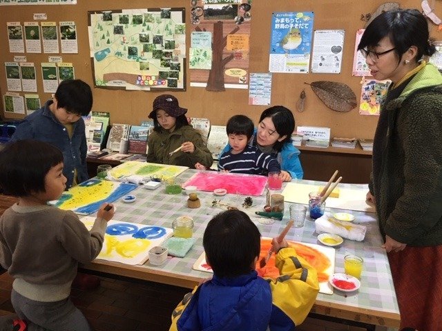 にじみ絵の後は炭焼き小屋まで森のお散歩。