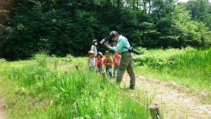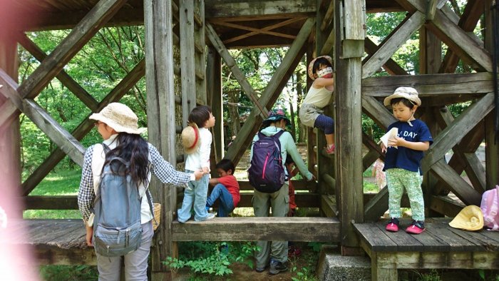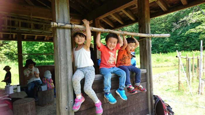 2020年06月04日(木) 森のようちえん はじめのいっぽ 6月だけど、とてもとても暑い日。 いつもの森に、こびとさんたちの笑い声が戻ってきました。 久々に会う、お顔はとてもキラキラしています。 お休みの間に、森の緑も、 うーんと濃くなっていました。 「はじめのいーっぽっ」 みんなで虹色シフォンをくぐり、 お散歩へしゅっぱーつ!! そうそう、登らなきゃ。 嬉しくって、なかなか先に進めません。 今年もよろしくね。 (Kくんかあさん)