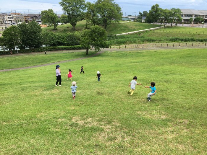 2020年06月25日(木) 森のようちえん 桑の実とり 今回は、桑の実を採りに、呉羽に集合でした。 上の方にある熟れた実を目指して、木登り! ハンモックも気持ちいい~。 ザリガニ釣り。 坂で駆け回るこどもたち。 大きな桑の木下で。 絵本を読んで、今日はさようなら。 また来週! 梅雨の合間の晴れ間に、気持ちの良い一日でした。みなさんありがとうございました! 森のこども園、インスタグラムもはじめました。 (Kちゃんかあさん)