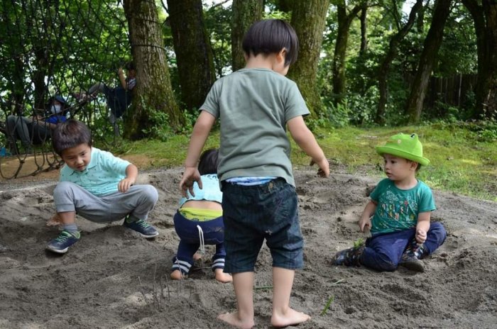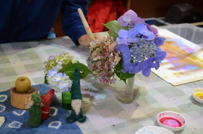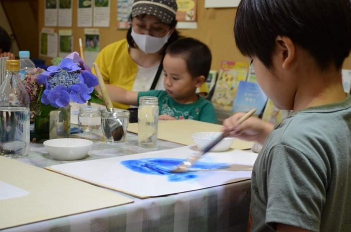 2020年07月16日(木) 森のようちえん にじみ絵とてるてる坊主 毎日、天気予報とにらめっこの日々。 幸い、お天気にも恵まれた今週のようちえん。 おやつを食べて、さあ、活動開始。 かおり先生をお招きして、 にじみ絵講座です。 雨のお話を聞き、筆を走らせます。 湿らせた紙に、色をのせると・・・。 こびとさんたち、その変化をとても楽しんでいました。 空いた時間では、羊毛を丸めて、てるてる坊主作り。 虫を探したり、思いっきり走ったり、砂で遊んだり みんな、遊びの博士だね。 (Kくんかあさんより)