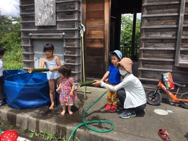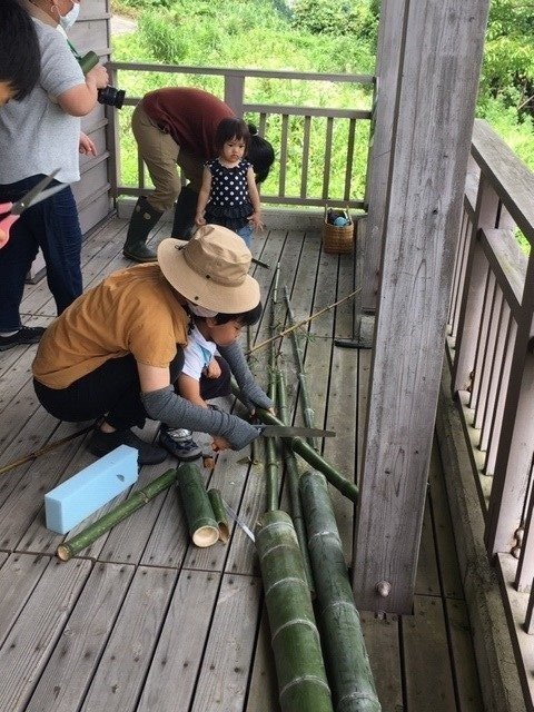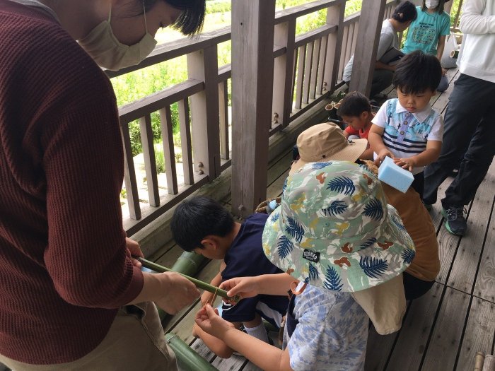 夏の強い日差しを感じられた今日は、山田のころころハウスで竹水鉄砲作り。