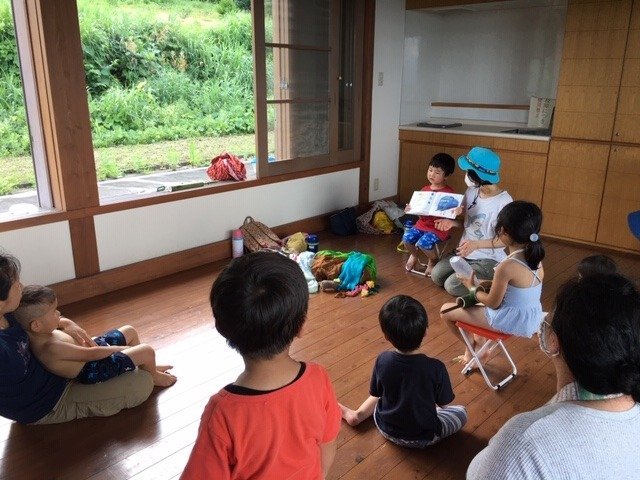 人形劇であめふりくまのこを歌いました。心地よい風が流れます。