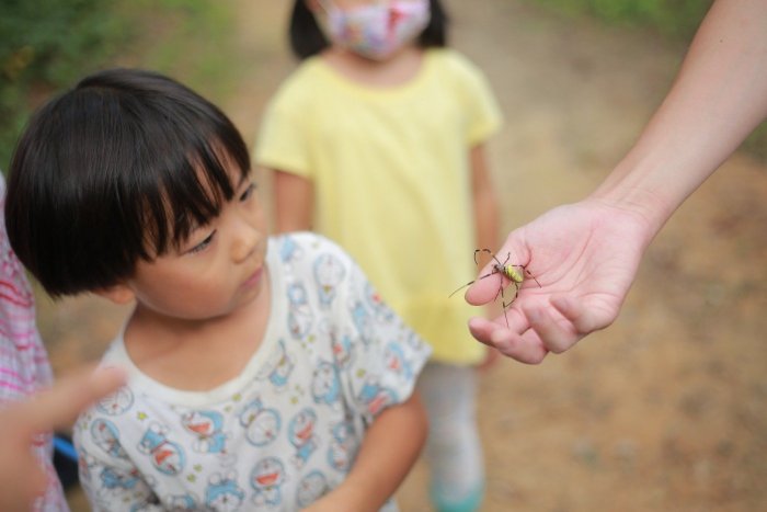 お母さんが苦手な虫もひょいっと捕まえて子ども達に見せてくれて虫についての沢山の知識を教えてくれます。