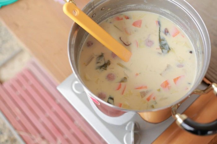 今週のお昼ご飯のスープは豆乳味噌味でした。最近王道な味噌汁が定番だったのでアレンジしてみました。ほっこりして美味しかったです。