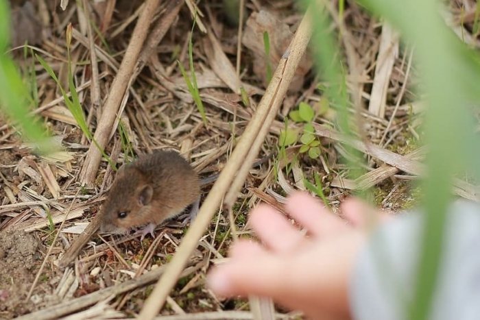 子ども達は何でも発見するのが早いですね。突然現れたアカネズミ!可愛かった~家族で住んでるのかな?