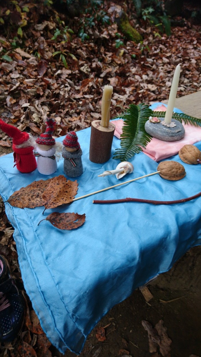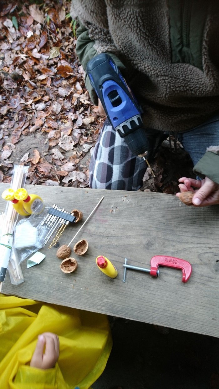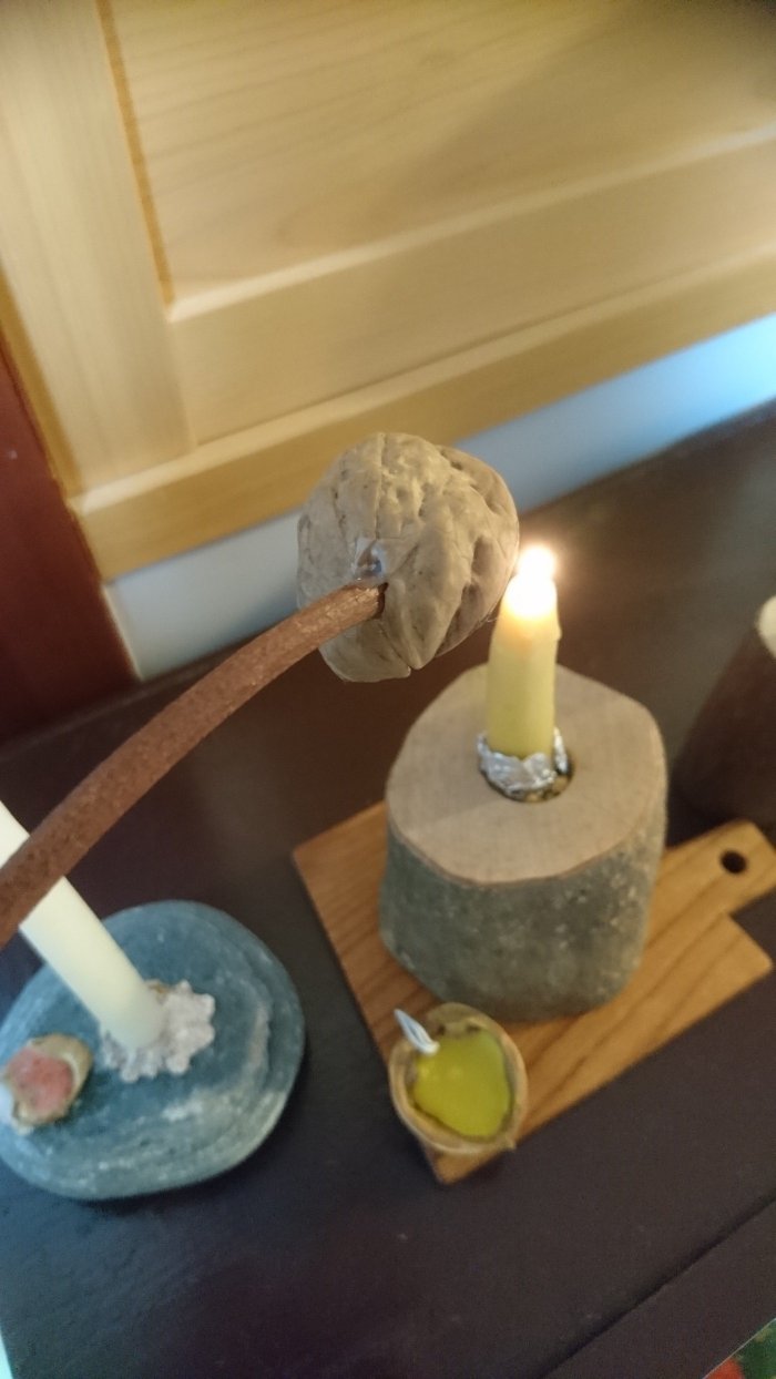 2020年11月26日(木) 森のようちえん 胡桃キャンドルと胡桃の火消し 今日は、来週のアドベントガーデンの為の杉枝を集めることから始まりました。 おやつは、カボチャ餅とふかしたお芋!! 炭焼き小屋までお散歩しながら行って。 途中で拾った小枝で。 胡桃のキャンドルと火消しを作りました!! 絵本を読んで。 また、来週!! 小雨が降りましたが、子供達は元気に、楽しんでいました。 素敵!! お家でも、これからの時期。お話の時間やクリスマスに向けての時間に。 大活躍しそうです! (Kちゃんかあさん)