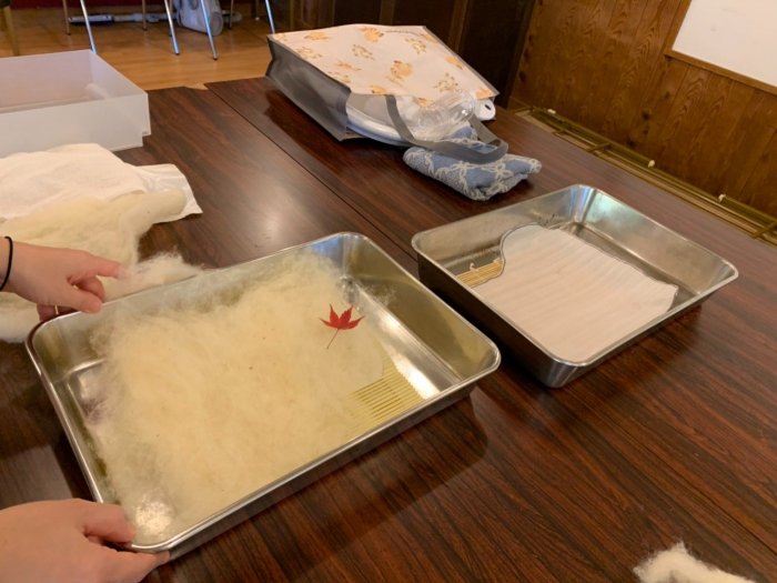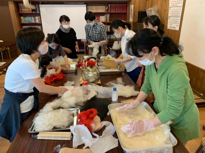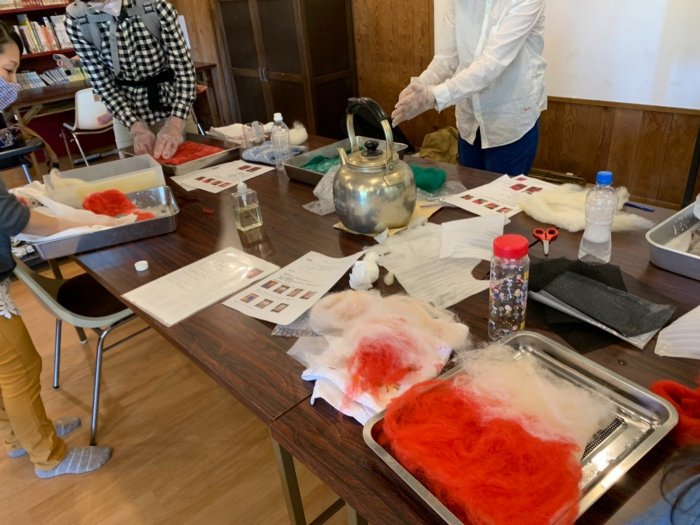 フワフワのフェルトを、石鹸水でゴシゴシしていくと、キレイな形になっていく。
