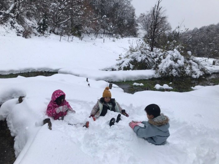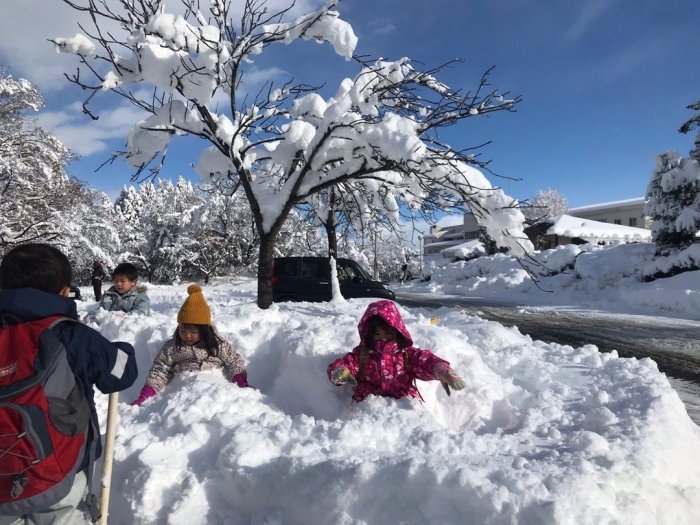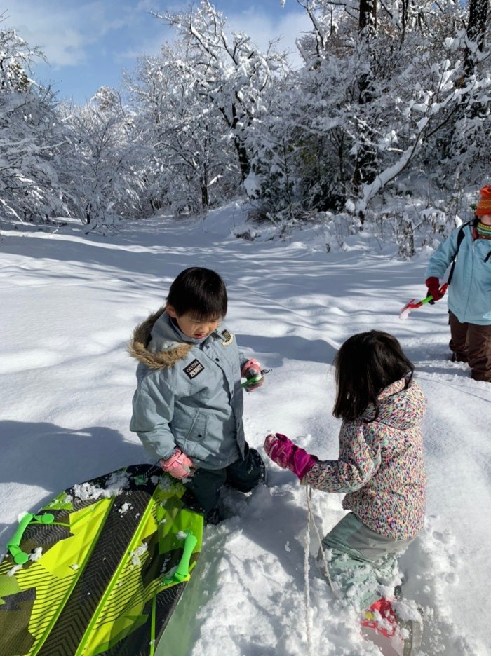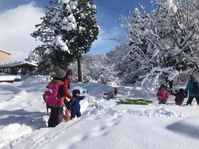 今週の森のようちえんはどっさり雪が降って