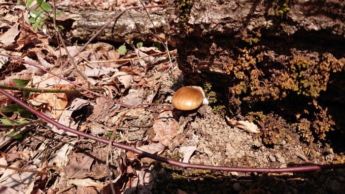 松ぼっくりやどんぐり等をちいさな手で大事そうにたくさん拾いながら進んで行きます。