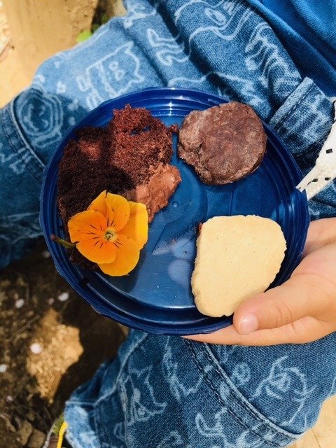 「森の園舎」(栴檀野)のガーデンで摘まれたばかりの食花たちが添えられます。