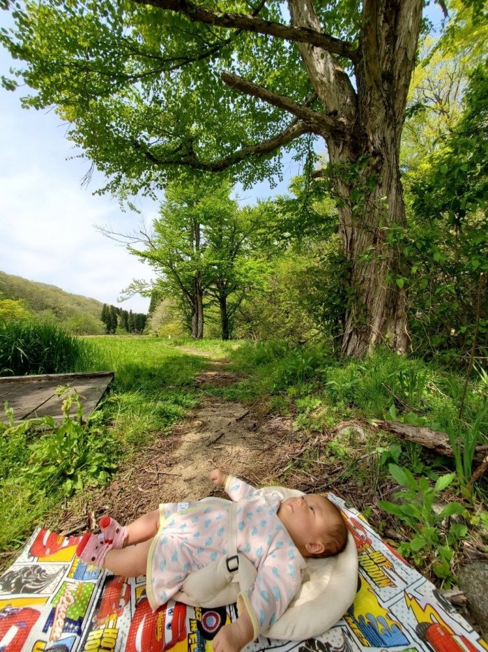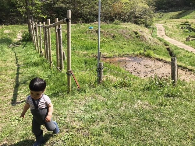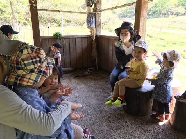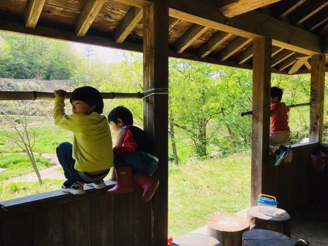 今日は炭焼き小屋で作ったお味噌汁を運んで、