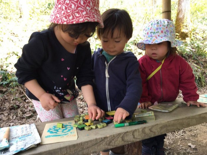 今年度のお月謝袋、みんなで消しゴムハンコを使って毎年作ります。