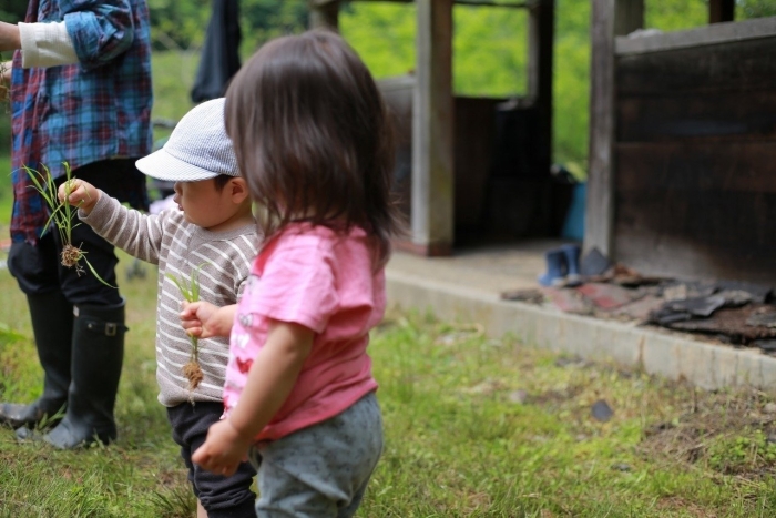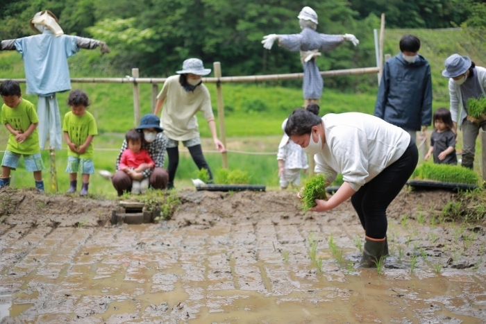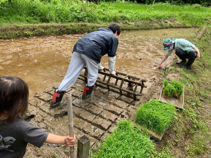 田植えの日だから、みんなで田んぼに入って、並んで田植えしましょう!ではなく