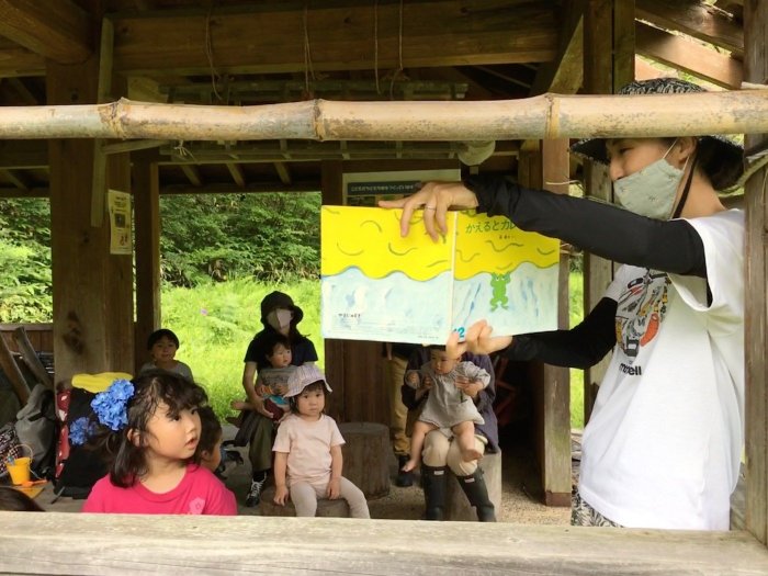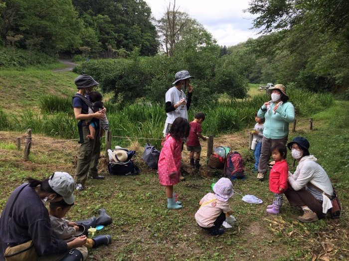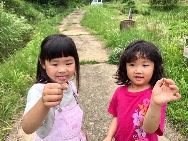 トンボやカマキリの赤ちゃん、カエル、カナヘビ、アリ、ダンゴムシなどなど、触ったり捕まえたり、たっぷりと自然に触れ合いました。