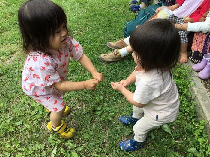 5歳児さんたちのあそびを真似て、2歳児さんもチャレンジ!