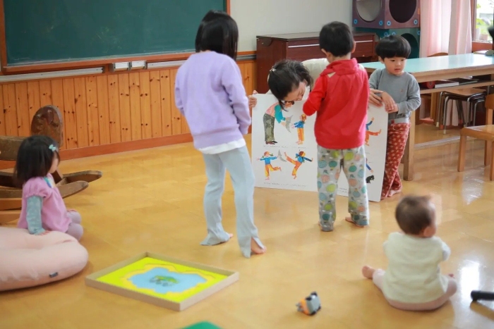 いつもの森を離れてみんなで園舎に集まるのは久しぶりで大はしゃぎでした。