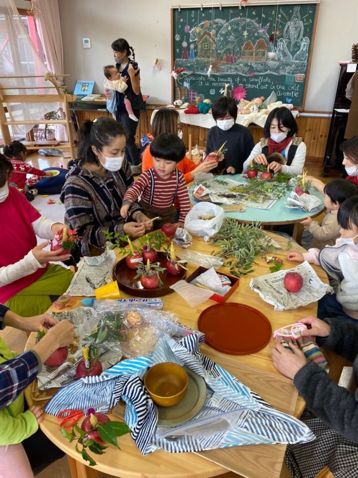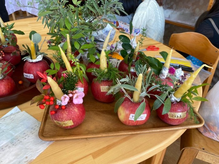 2021年11月25日(木) 森のようちえん アドヴェントガーデン こびとさんもかあさんも 待ち望んていたアドヴェントガーデンの日。 アドヴェントガーデンとは、 クリスマスアドヴェント期間の始まる頃に行なわれる行事です。 暗い中、こどもたちが灯したりんごろうそくの光の渦巻きを静かに見守ります。 こどもたちの心にも明るい光が灯される、そんなひととき。 りんごロウソク。 かあさん手作りクッキー 久々のポットラックも嬉しいな。 りんごを大切に持って歩くこびとさんたちは 少し誇らしげでした。