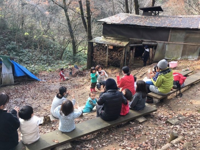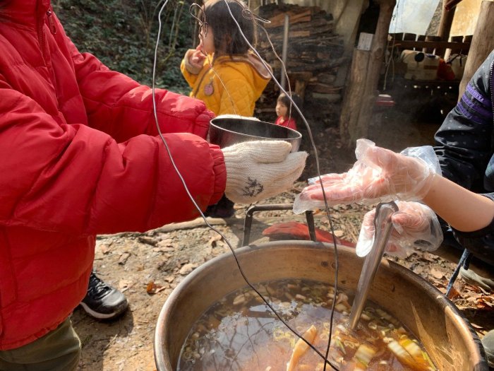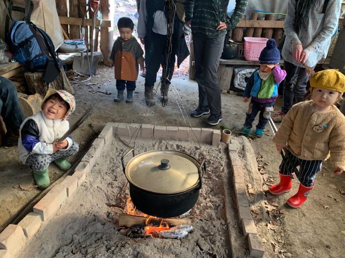 小さな人たちは、囲炉裏の火、薪、灰、焼き芋、全てが目新しく、集まってきて、つんつん色んなものにさわっていました。