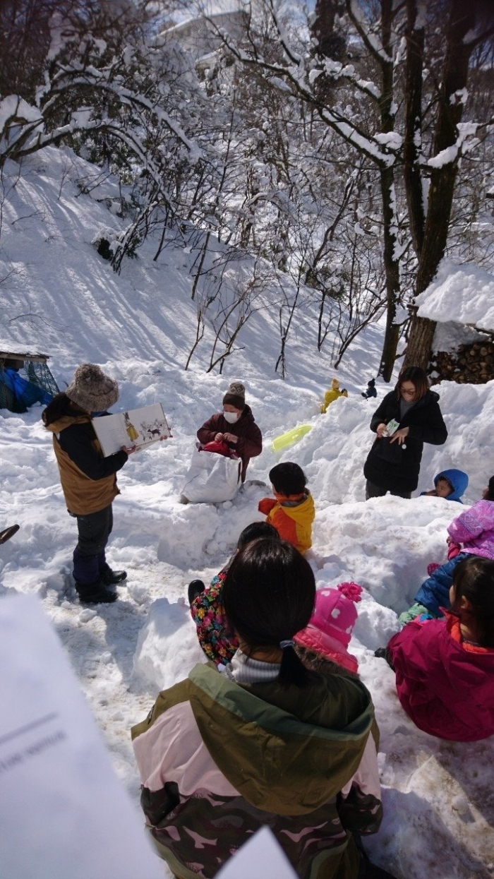2022年02月24日(木) 森のようちえん お誕生会 きょうの森は、とても良いお天気で 誕生会日和でした。 雪の量が凄くて、 炭焼き小屋までの道のりも。 みんなとても楽しくて!! 炭焼き小屋に着いたら、 2月の誕生会をしました。 可愛い小人さんを、 みんなでお祝いしましたよ! みんな、雪に大喜びで。 元気に遊びましたよ。 沢山の雪とピカピカのお日様。 あったかい焚き火。 とても、 楽しい素敵な1日になりました。 (Kちゃんかあさん)