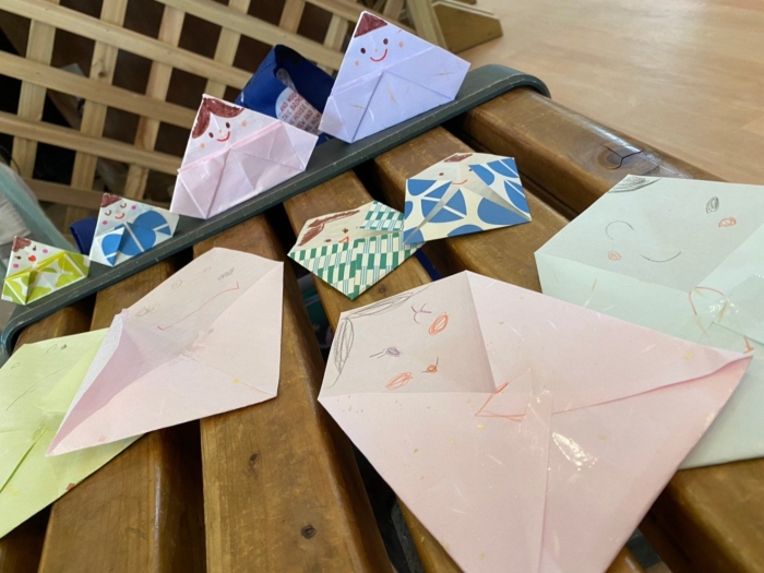 持ち帰った折り雛は、子供たちが元気で幸せになるようにお祝いやの気持ちや願いを込めて飾りました。
