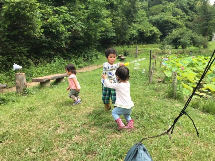 残った時間は池の方まで遊びに行ったり、シャボン玉したり、水溜まりで水遊びしたり、ゆったりのんびりと過ごしました。