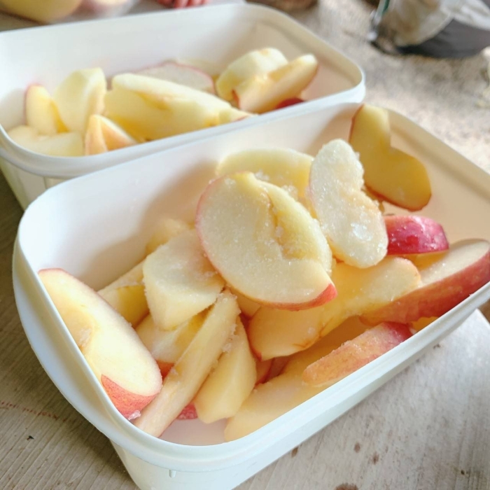 楽しみなおやつはまだ食べた事がない冷凍リンゴでした。冷凍と冷蔵と2パターン用意してくれるなんて心遣いが優しいです。