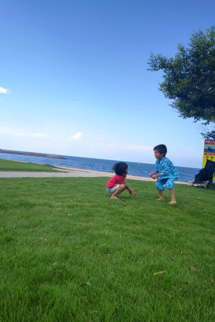 森で虫捕りが大好きだった兄さん、今日は魚を捕ってカニを探して海水浴もして、ああ楽しい楽しい忙しい。