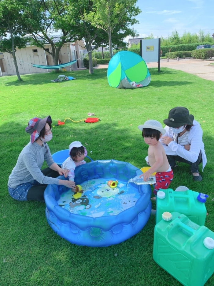 小さいひとは、ビニールプールでちゃぷちゃぷ。