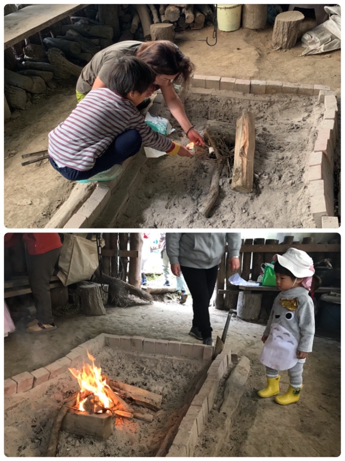 みんなでお祝いした後は、炭焼き小屋へ出発です。
