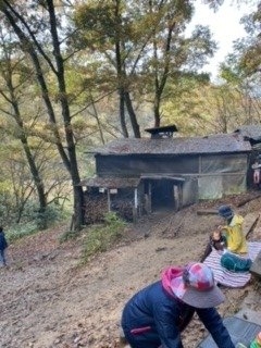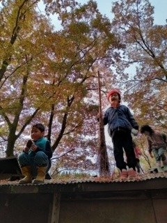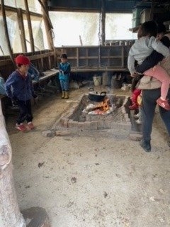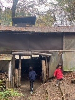 森で拾った枝を使って棒巻きパンを作ったり、焼き芋やウィンナー、ベーコン巻きやお餅、みかん…など、焼いて食べて。