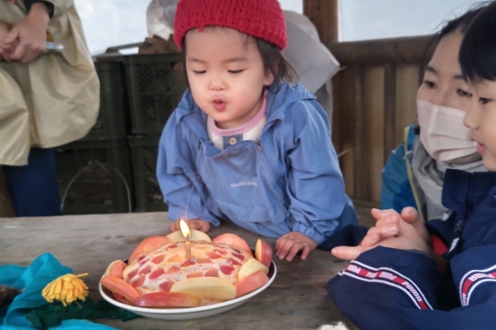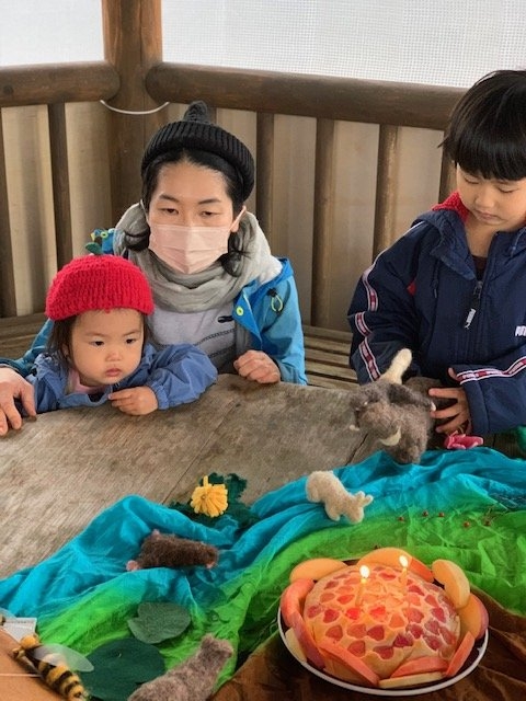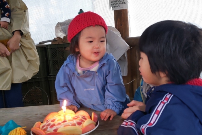 森の母さん達、みんなで生まれた時から見守ってきた彼女は、ろうそく2本。