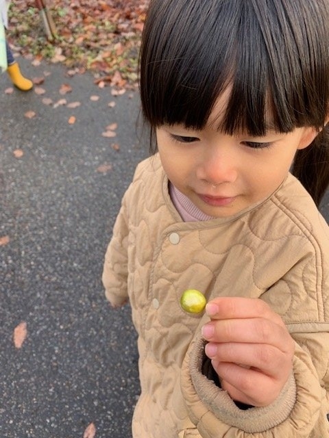 今日は、お散歩前に建物に入ってしまい、一度建物に入ると、靴を脱いでしまったり、レインウェアを脱いでしまったり、小さい人は外にまた出るのが少し難しかった様子。