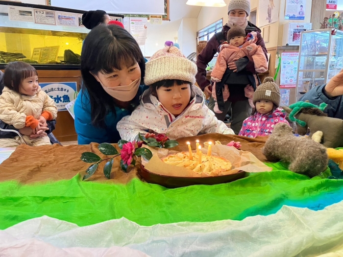 4歳の女の子のお誕生会。森の動物さんたちもかけつけてくれました。お誕生日おめでとう。