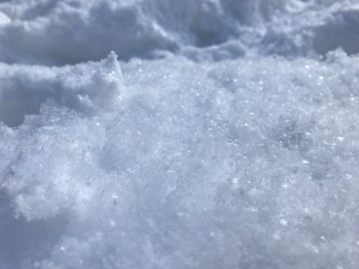 太陽の光が反射して、雪がキラキラしていたよ。肉眼で雪の結晶も見えたよ。
