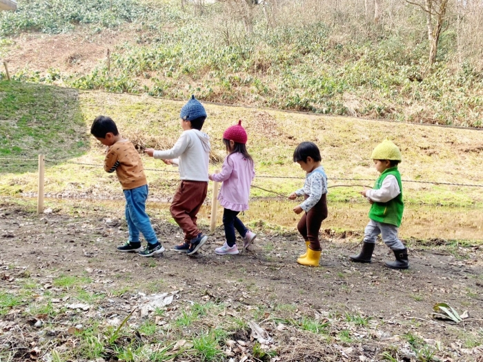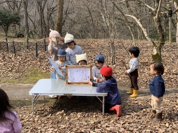 2023年03月09日(木) 森のようちえん 巣立ちの会 5人のこびとさん 巣立ちの日。 かあさんが編んでくれた どんぐり帽子で集まったよ。 春みーつけた 巣立ちのおにいさんおねえさん。 1年間の想い出を 紙芝居に。 ありがとう。 (Kくんかあさん)