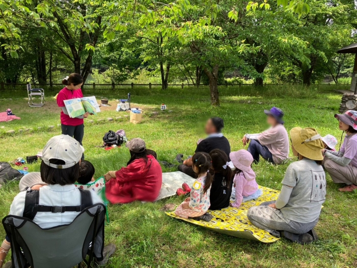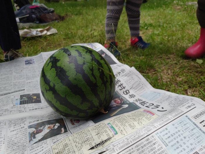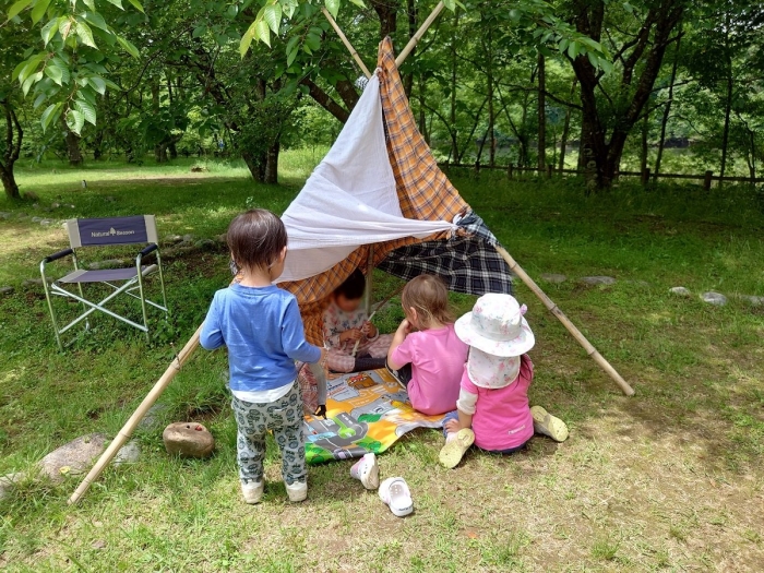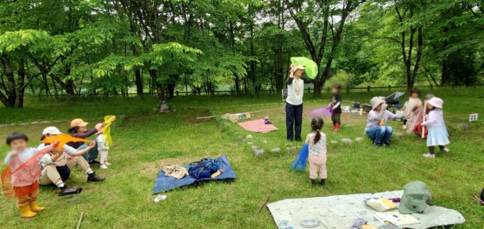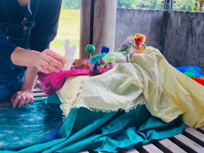 おやつのいちごを何回もおかわりしたあと、みんなで「3つの種」の人形劇を見ます。